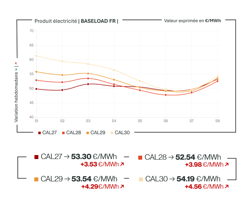 L’électricité française évolue aujourd’hui autour de 52–58 €/MWh sur la European Energy Exchange pour 2026. À première vue, tout semble sous contrôle. Les prix sont modérés, la volatilité contenue, et l’horizon dégagé. Mais sous cette surface apaisée se cache une équation plus fragile.